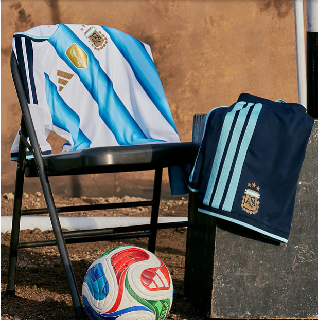 তিনবারের বিশ্বকাপ চ্যাম্পিয়ন আর্জেন্টিনার নতুন এই জার্সিতে তিন তারকার উপস্থিতি প্রত্যাশিতই ছিল। ঐতিহ্যবাহী লম্বা ডোরাগুলোতে তিনটি রঙের আকাশি নীলের ছোঁয়া, যা অনুপ্রাণিত ১৯৭৮, ১৯৮৬ ও ২০২২ বিশ্বকাপ জয়ের জার্সি থেকে। পাশাপাশি জার্সিতে ঘাড়ের পেছনে খোদাই করে ‘১৮৯৩’ সাল লেখা—এই বছর আর্জেন্টিনা ফুটবল অ্যাসোসিয়েশন (এএফএ) প্রতিষ্ঠিত হয়। বুকের মাঝে সোনালি প্যাঁচ, যা ২০২২ সালে কাতারে আর্জেন্টিনার সর্বশেষ বিশ্বকাপ জয়ের প্রতীক।